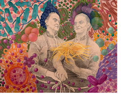 There is a clear connection between the healing process and current artistic pursuits As an artist inspired by science, 'nano life' paintings capture the invisible energies surrounding us. One artwork depicts humans wandering through a matrix of mitochondria ("She was your ancestor too?"), while another, “Garden with Organelles,” illustrates the gifting of dandelion-like Higgs Boson. This art does not dissect science but celebrates its beauty, like how a still life highlights nature's forms.